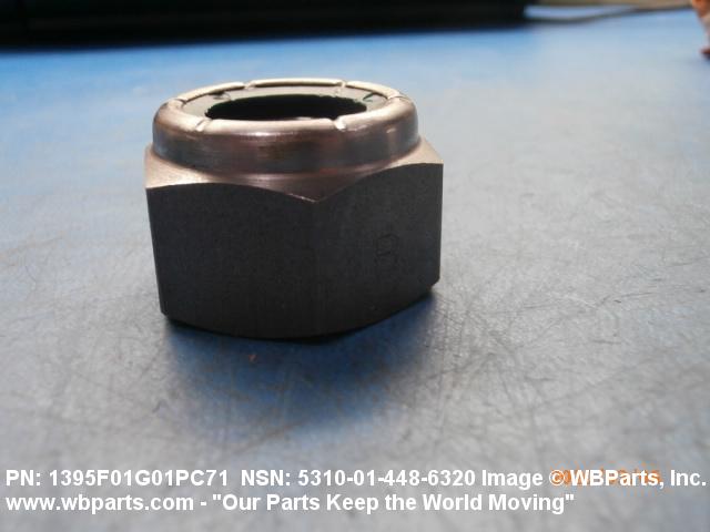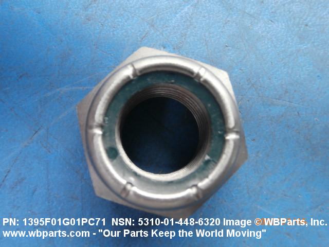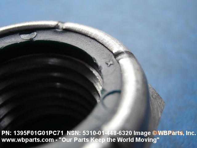 5310-01-448-6320 A nut having a flat bottom and 6 sides. An integral feature is incorporated for locking on the threads of a mating member. Excludes NUT (1), SELF-LOCKING, CAP.