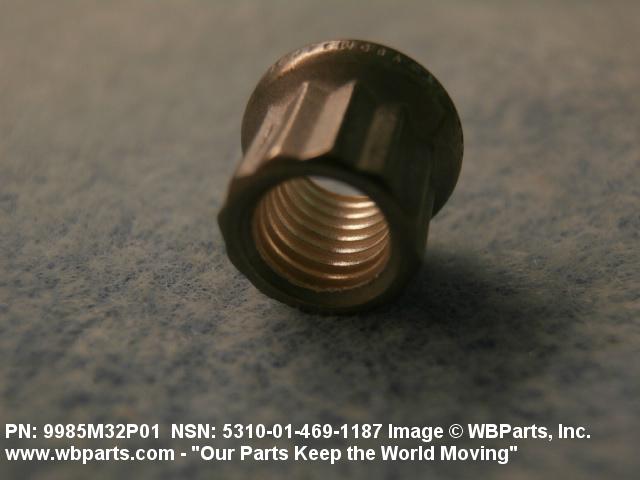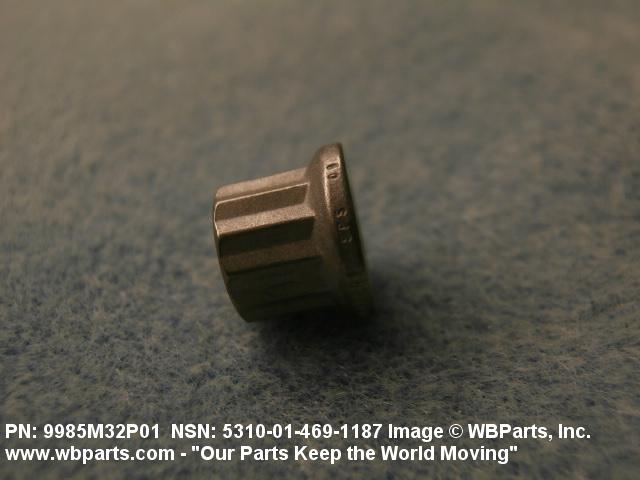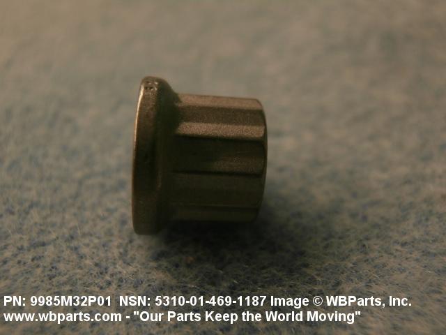 5310-01-469-1187 A nut having one convex, spherical bearing surface, with 12 drive points, 24 sides. Items may have a removable collar. An integral feature is incorporated for locking on the threads of a mating member.