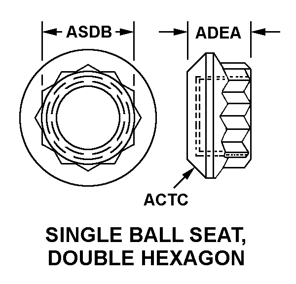 | NUT STYLE | A8A SINGLE BALL SEAT, DOUBLE HEXAGON |