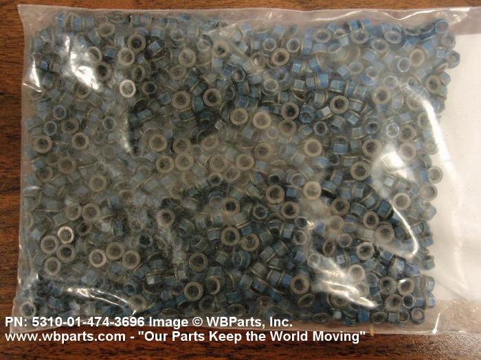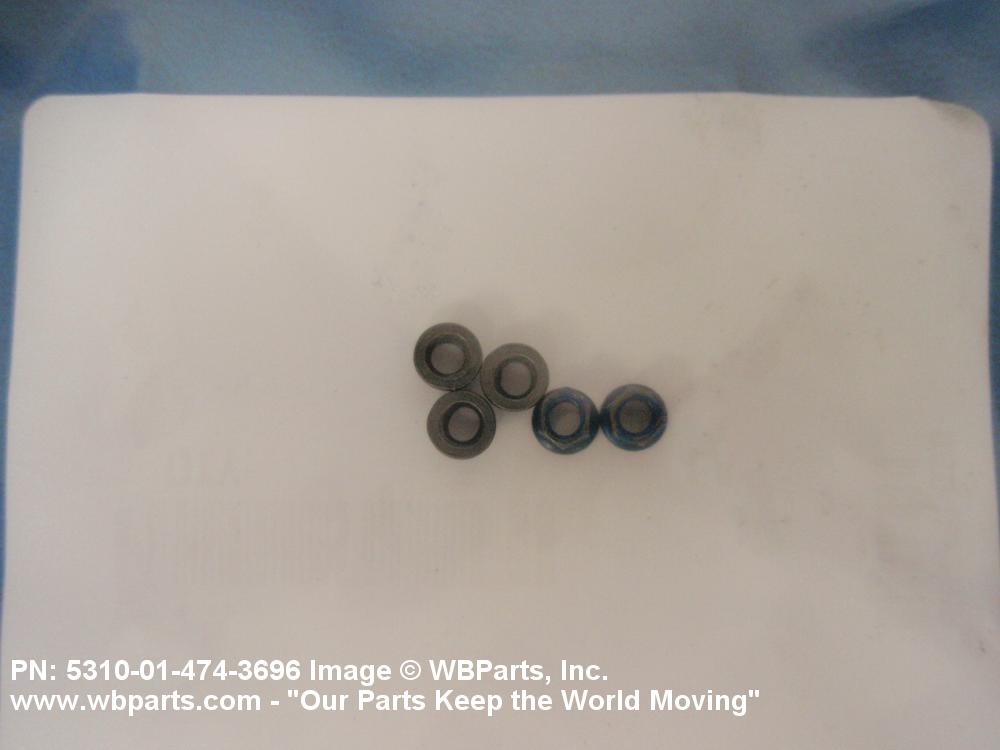 5310-01-474-3696 A nut having a flat bottom and 6 sides. An integral feature is incorporated for locking on the threads of a mating member. Excludes NUT (1), SELF-LOCKING, CAP.