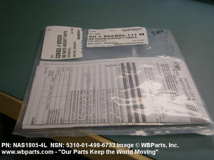 Part Alternates: NAS18054L, NAS1805-4L, 5310-01-498-6733, 01-498-6733, 5310014986733, 014986733