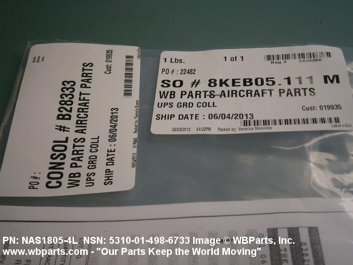 NSN 5310-01-498-6733 NAS18054L, NAS1805-4L, 01-498-6733