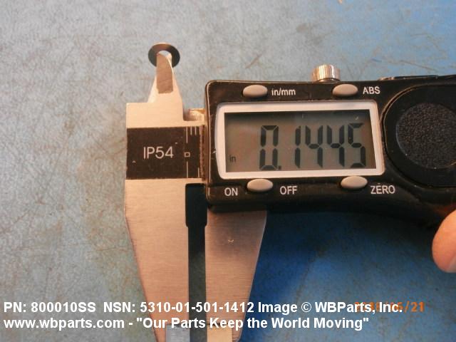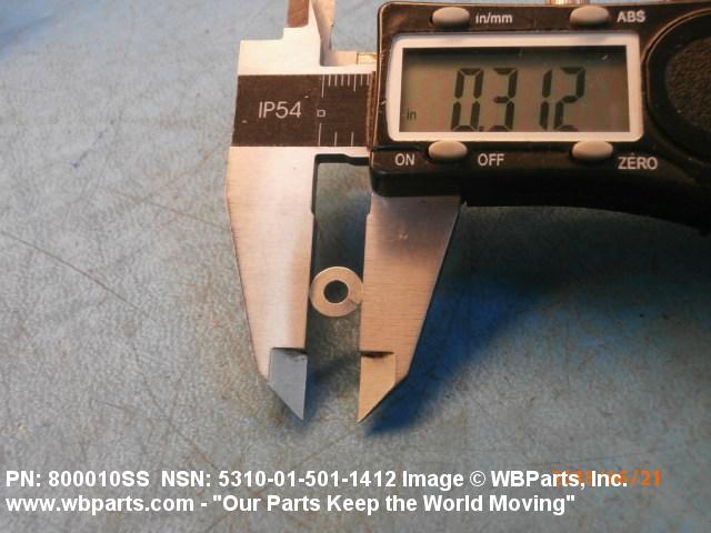 5310-01-501-1412 A washer having a centrally located hole with a solid or laminated cross-section and two flat parallel bearing surfaces. The hole must be 75 percent or less than the largest dimension and the bearing surface finish is greater than 32 microinch (0.8 micrometer). The thickness cannot exceed 25 percent of the largest outside dimension. When the largest outside dimension is less than 1/4 inch or 6mm, the thickness must be 0.006 inches (0.15mm) or greater and for items 1/4 inch (6mm) or larger, the thickness must be 0.016 inches (0.4mm) or greater. The maximum tolerance is applied to dimensions and used as a determining factor. Items with separable lamination use SHIM. For items fabricated from ceramic or electrically rated materials by specification or industry standards use INSULATOR (1), WASHER. Excludes DISK, VALVE, graphite impregnated and lubricated items.