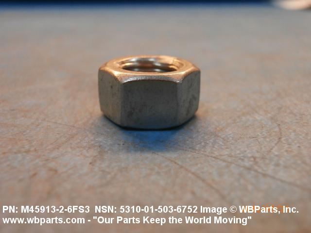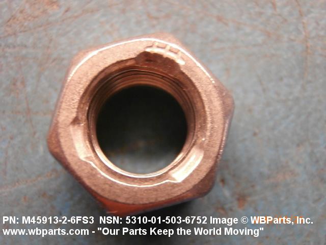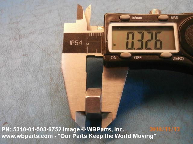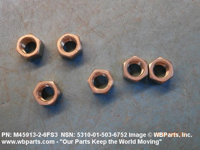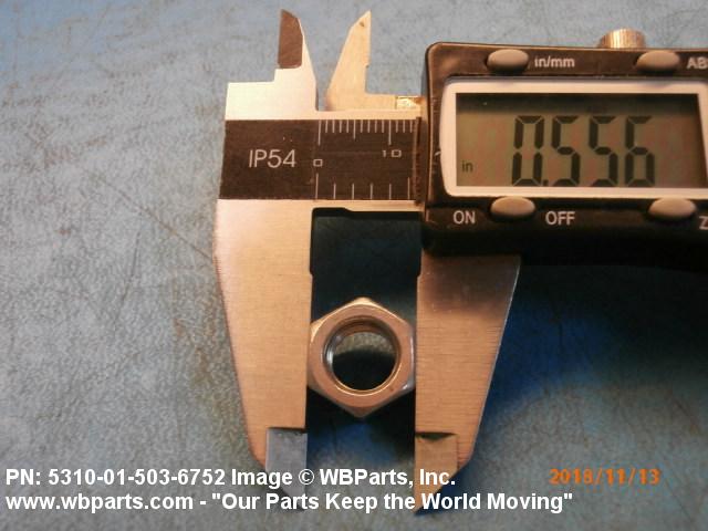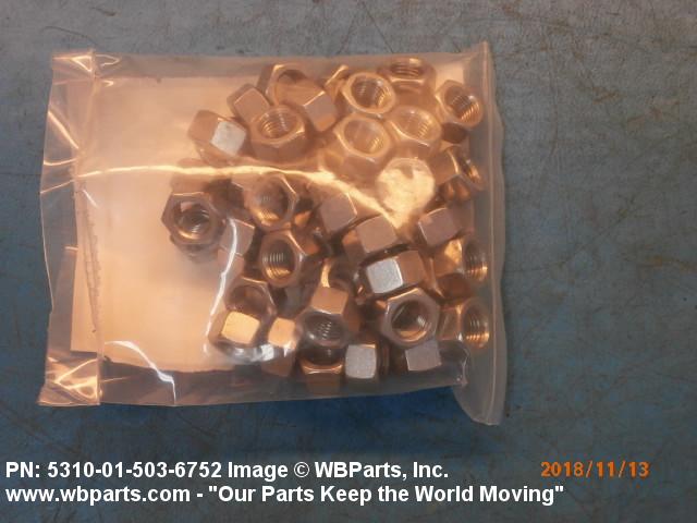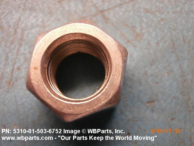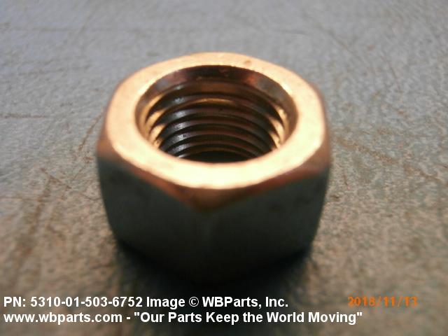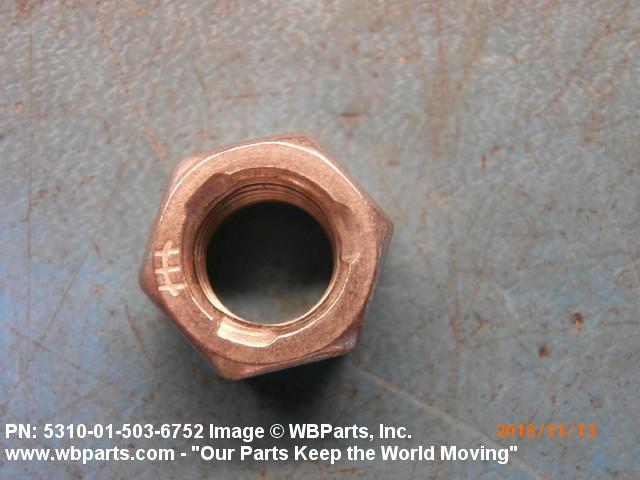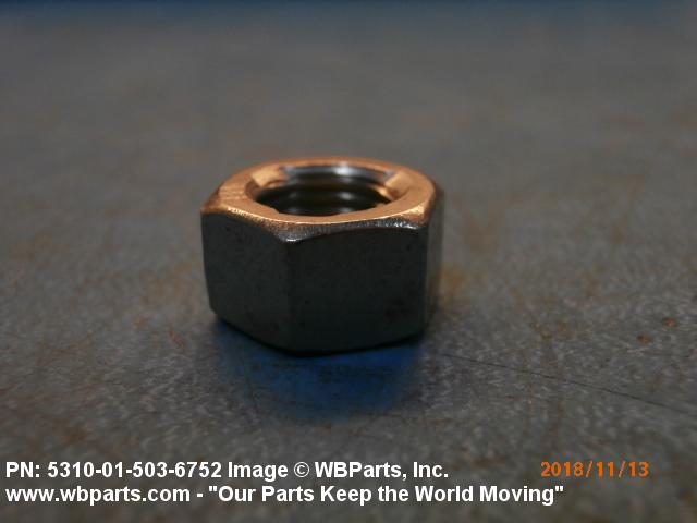 5310-01-503-6752 A nut having a flat bottom and 6 sides. An integral feature is incorporated for locking on the threads of a mating member. Excludes NUT (1), SELF-LOCKING, CAP.