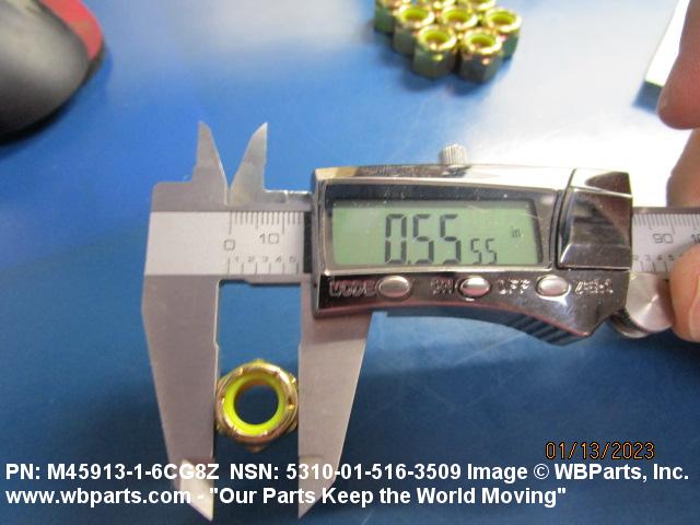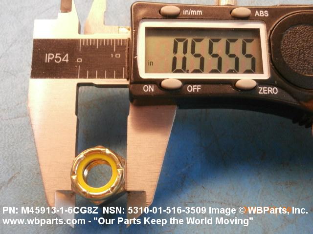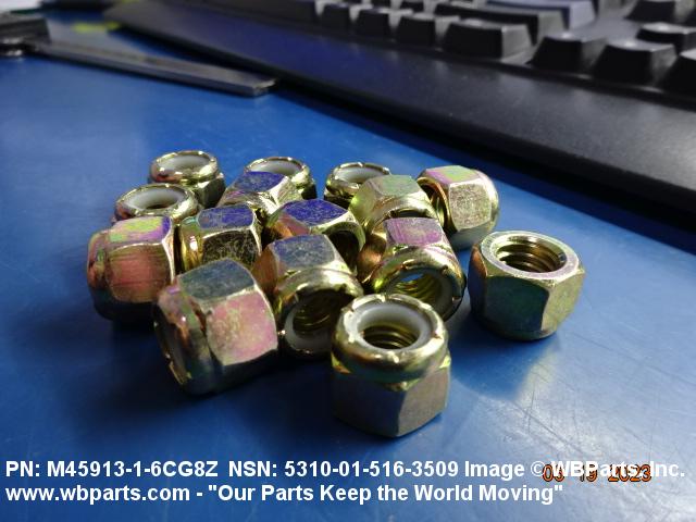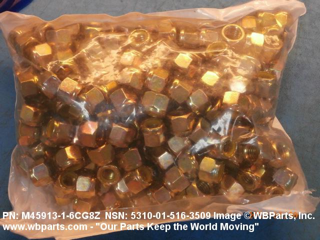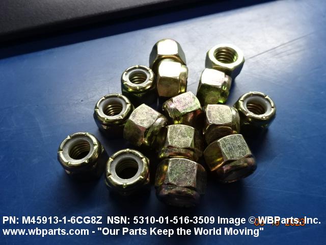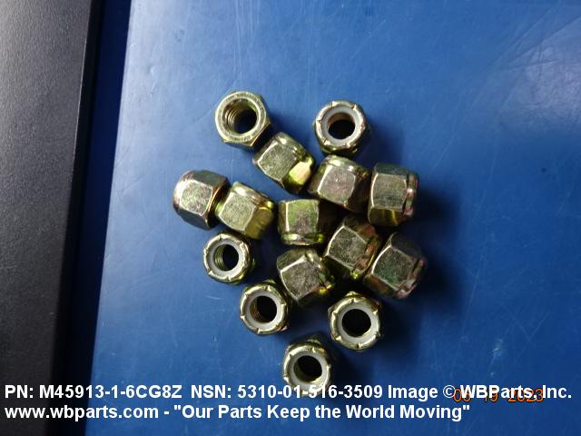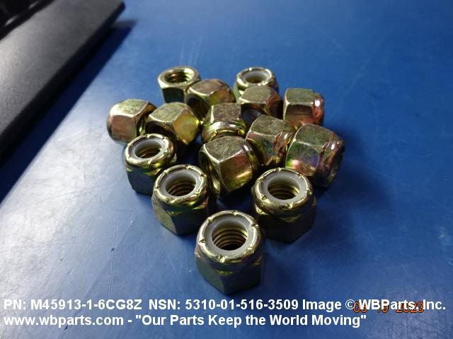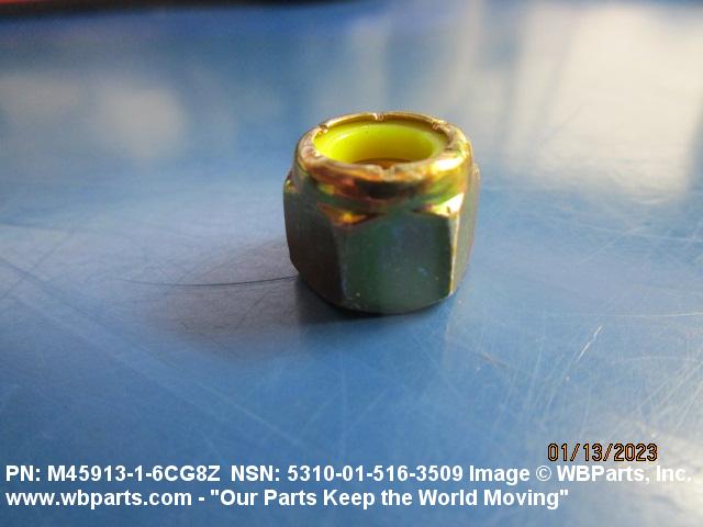 5310-01-516-3509 A nut having a flat bottom and 6 sides. An integral feature is incorporated for locking on the threads of a mating member. Excludes NUT (1), SELF-LOCKING, CAP.