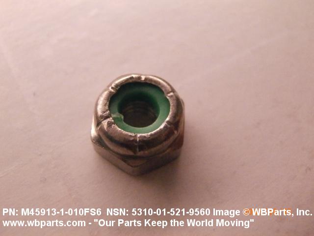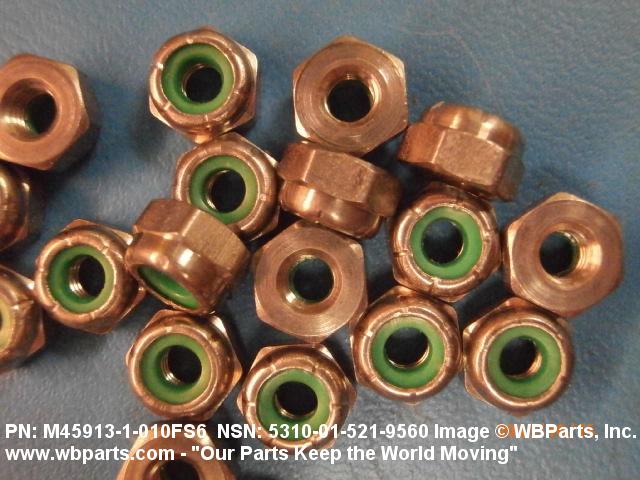 5310-01-521-9560 A nut having a flat bottom and 6 sides. An integral feature is incorporated for locking on the threads of a mating member. Excludes NUT (1), SELF-LOCKING, CAP.