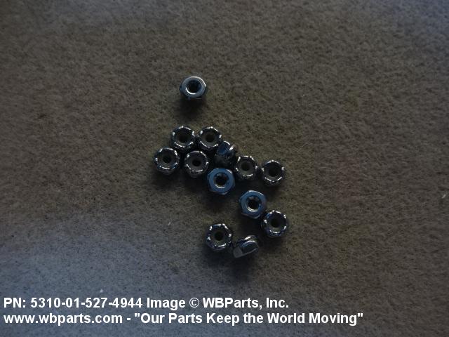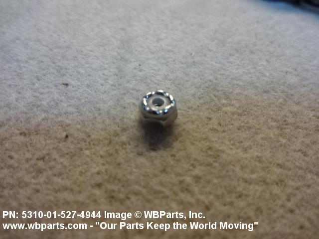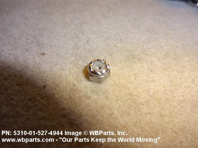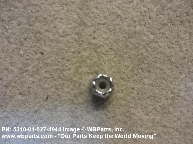 5310-01-527-4944 A nut having a flat bottom and 6 sides. An integral feature is incorporated for locking on the threads of a mating member. Excludes NUT (1), SELF-LOCKING, CAP.