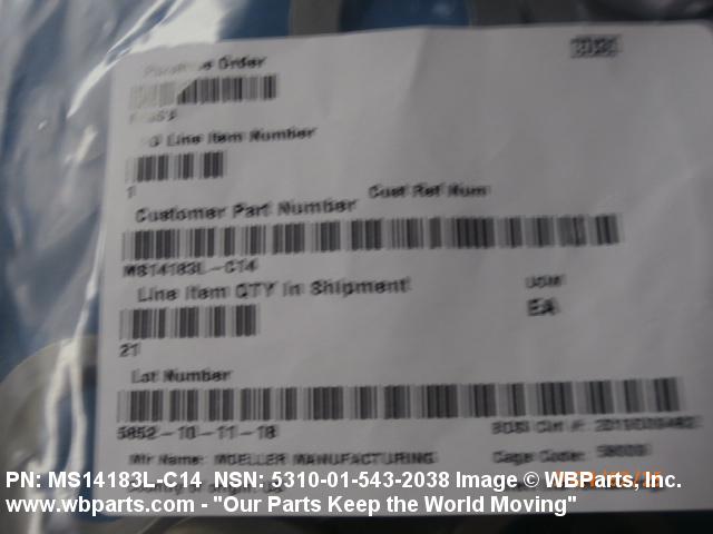 Part Alternates: MS14183LC14, MS14183L-C14, 5310-01-543-2038, 01-543-2038, 5310015432038, 015432038