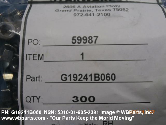 Part Alternates: G19241B060, G19241M, 5310-01-605-2391, 01-605-2391, 5310016052391, 016052391