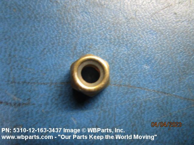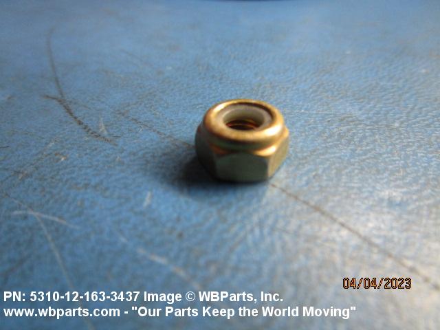 5310-12-163-3437 A nut having a flat bottom and 6 sides. An integral feature is incorporated for locking on the threads of a mating member. Excludes NUT (1), SELF-LOCKING, CAP.