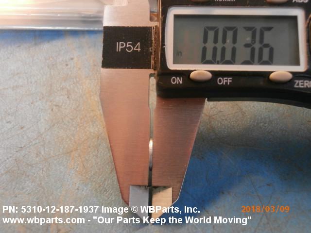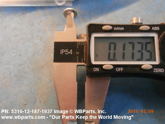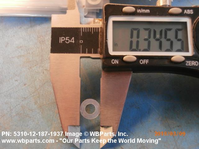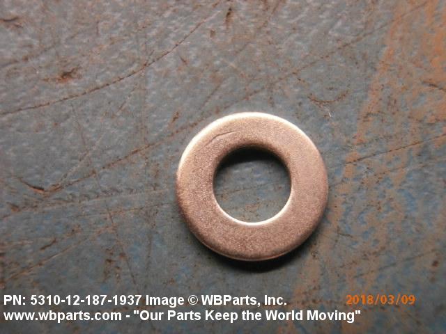 5310-12-187-1937 A washer having a centrally located hole with a solid or laminated cross-section and two flat parallel bearing surfaces. The hole must be 75 percent or less than the largest dimension and the bearing surface finish is greater than 32 microinch (0.8 micrometer). The thickness cannot exceed 25 percent of the largest outside dimension. When the largest outside dimension is less than 1/4 inch or 6mm, the thickness must be 0.006 inches (0.15mm) or greater and for items 1/4 inch (6mm) or larger, the thickness must be 0.016 inches (0.4mm) or greater. The maximum tolerance is applied to dimensions and used as a determining factor. Items with separable lamination use SHIM. For items fabricated from ceramic or electrically rated materials by specification or industry standards use INSULATOR (1), WASHER. Excludes DISK, VALVE, graphite impregnated and lubricated items.