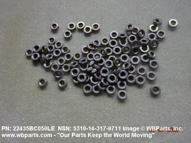 5310-14-317-9711 A nut, flat on top and bottom having 6 flat sides. For items which have internal tapered or straight (parallel) pipe threads, specific electrical conduit size designation, and which when installed, provide a method of tightening to lock the connection, see LOCKNUT, ELECTRICAL CONDUIT. See also LOCKNUT, TUBE FITTING. For items having a thickness (or height) exceeding two times the width across the flats, use POST, ELECTRICAL-MECHANICAL EQUIPMENT. (When height or thickness and/or width across the flats is designated as a tolerance dimension, the maximum dimension will be used to determine compliance.