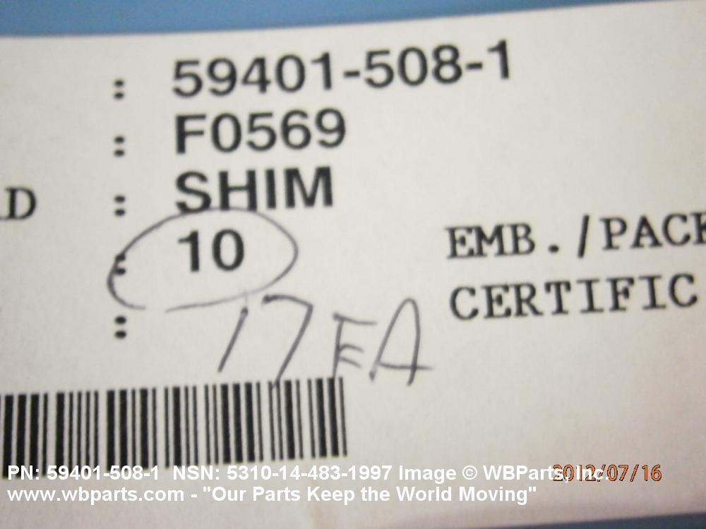5310-14-483-1997 A washer having a centrally located hole with a solid or laminated cross-section and two flat parallel bearing surfaces. The hole must be 75 percent or less than the largest dimension and the bearing surface finish is greater than 32 microinch (0.8 micrometer). The thickness cannot exceed 25 percent of the largest outside dimension. When the largest outside dimension is less than 1/4 inch or 6mm, the thickness must be 0.006 inches (0.15mm) or greater and for items 1/4 inch (6mm) or larger, the thickness must be 0.016 inches (0.4mm) or greater. The maximum tolerance is applied to dimensions and used as a determining factor. Items with separable lamination use SHIM. For items fabricated from ceramic or electrically rated materials by specification or industry standards use INSULATOR (1), WASHER. Excludes DISK, VALVE, graphite impregnated and lubricated items.