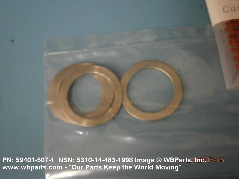 5310-14-483-1998 A washer having a centrally located hole with a solid or laminated cross-section and two flat parallel bearing surfaces. The hole must be 75 percent or less than the largest dimension and the bearing surface finish is greater than 32 microinch (0.8 micrometer). The thickness cannot exceed 25 percent of the largest outside dimension. When the largest outside dimension is less than 1/4 inch or 6mm, the thickness must be 0.006 inches (0.15mm) or greater and for items 1/4 inch (6mm) or larger, the thickness must be 0.016 inches (0.4mm) or greater. The maximum tolerance is applied to dimensions and used as a determining factor. Items with separable lamination use SHIM. For items fabricated from ceramic or electrically rated materials by specification or industry standards use INSULATOR (1), WASHER. Excludes DISK, VALVE, graphite impregnated and lubricated items.