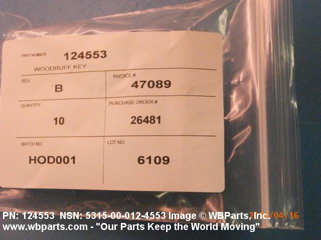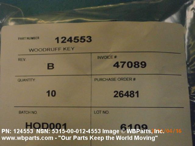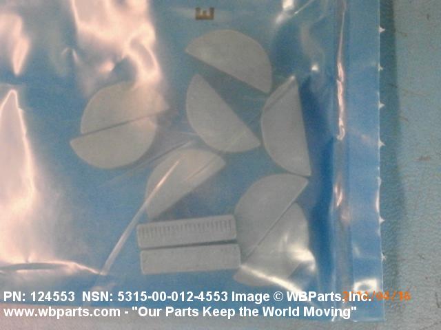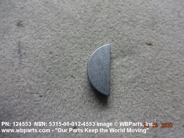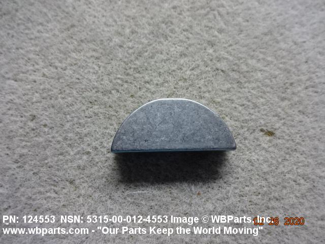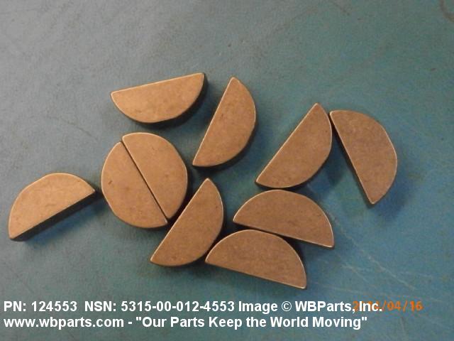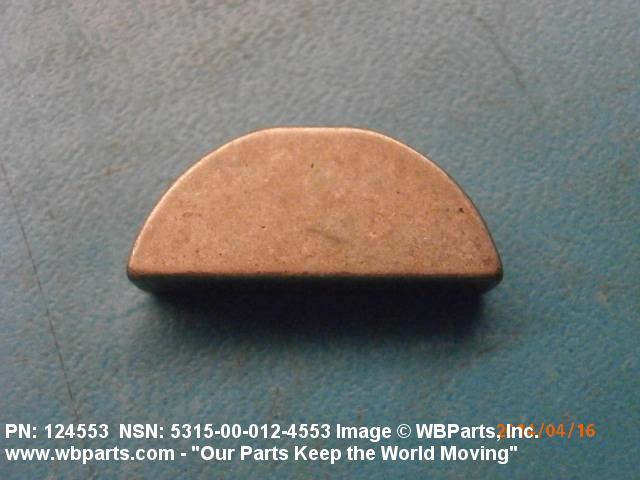 5315-00-012-4553 An item in the form of a segment of a disk, which may have a flat bottom, with or without projecting shoulders, designed to fit into a keyway in an axle or shaft, and into a matching slot in the hub or boss of a wheel, gear or pulley.