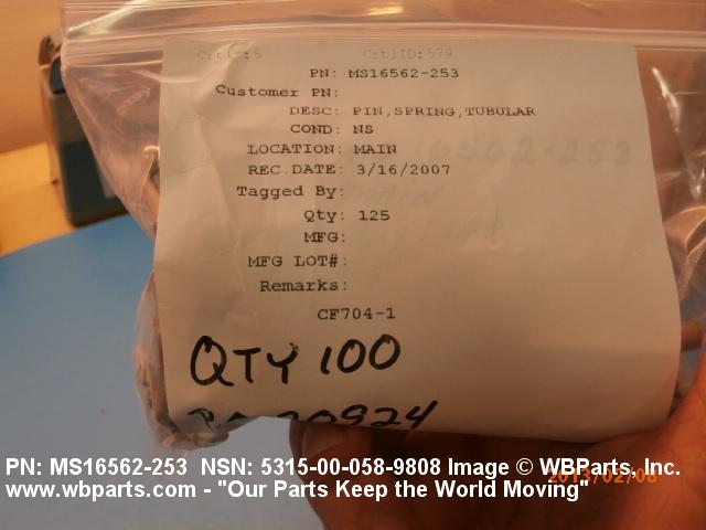 | MS16562-253 | 80205 | NATIONAL AEROSPACE STANDARDS COMMITTEE AEROSPACE INDUSTRIES |