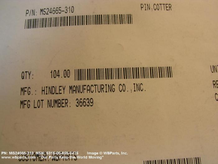 NSN 5315-00-059-0475 MS24665310, MS24665-310, 309337