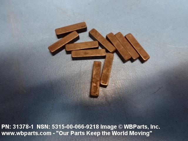 5315-00-066-9218 A metallic item, usually square or rectangular in cross section, usually longer in relation to its width and thickness, with or without a head, usually designed to fit into the pre-cut slots of two adjacent cylindrically shaped members, to prevent relative rotational movement between the two. It may have mounting holes or slots.