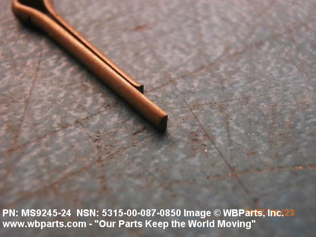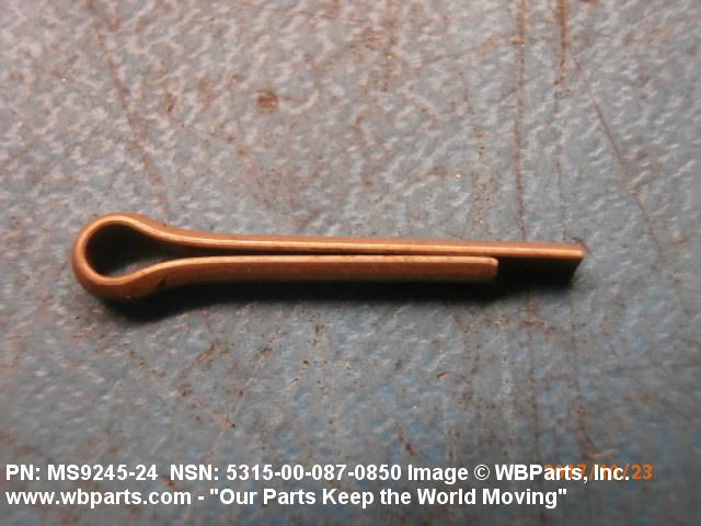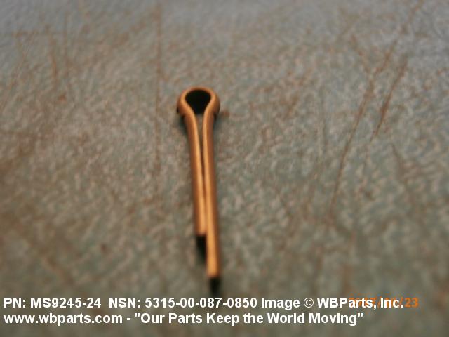 5315-00-087-0850 A half round, cylindrical, or flat piece of metal, bent to form a straight or crimped two-pronged device with an eye at one end, for inserting in a hole drilled at right angle to the axis of the stud, shaft, or like item. Its ends are separable or one end is bent to hold it in place.
