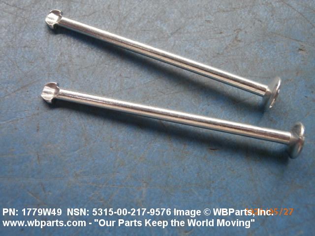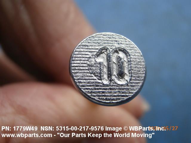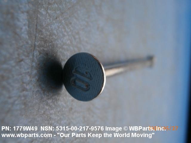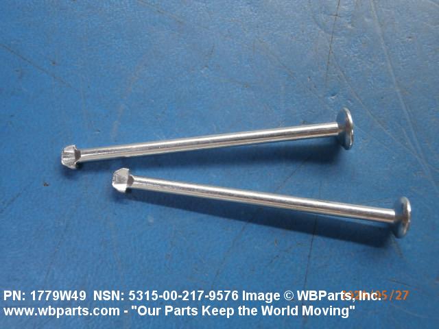 5315-00-217-9576 A headed, cylindrically-shaped item having a solid shank for fitting into corresponding holes, used for aligning or fastening. It may have welding projections. It also may contain holes drilled perpendicular to axial centerline. Excludes PIN, ECCENTRIC.