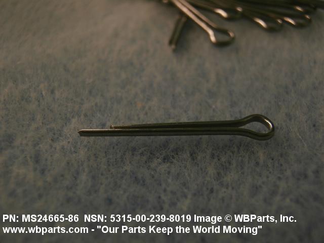 5315-00-239-8019 A half round, cylindrical, or flat piece of metal, bent to form a straight or crimped two-pronged device with an eye at one end, for inserting in a hole drilled at right angle to the axis of the stud, shaft, or like item. Its ends are separable or one end is bent to hold it in place.