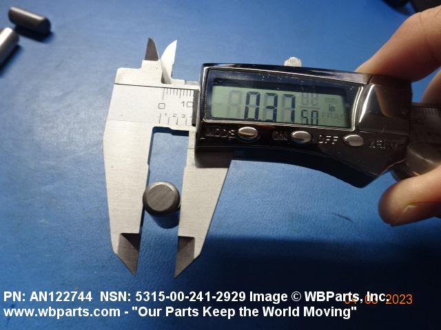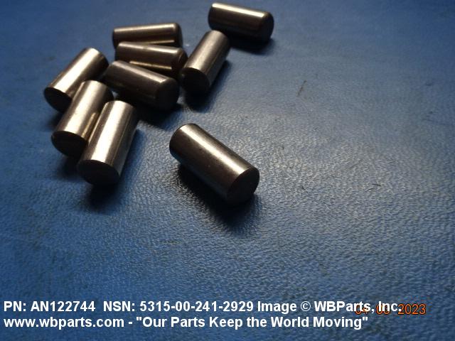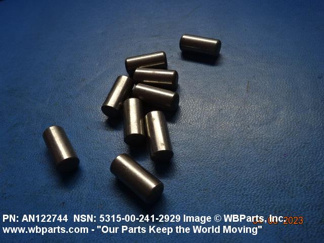 5315-00-241-2929 A headless, cylindrically-shaped item having a straight, smooth, solid body, with or without a drilled hole(s). It has an outside diameter equal to or less than its length. Its length must not exceed twelve inches (304 MM); for items whose length exceeds twelve inches (304 MM); see ROD, STRAIGHT, HEADLESS. It is used for aligning or transfer of torque and/or thrust, by fitting into corresponding holes of another item. See also PIN, STRAIGHT, THREADED.