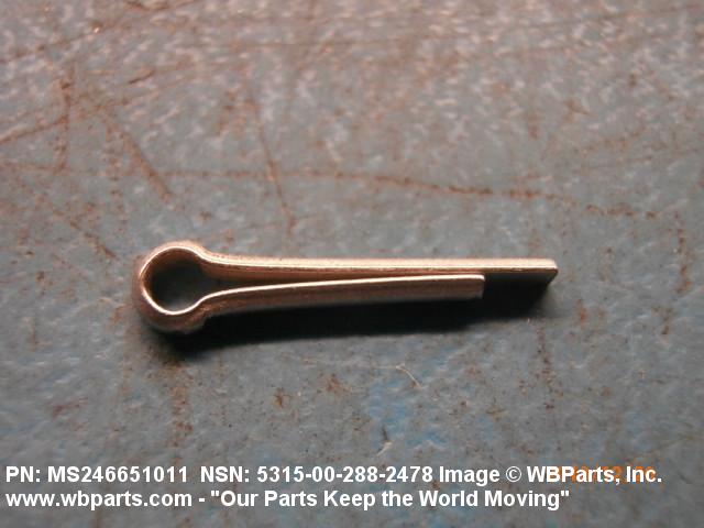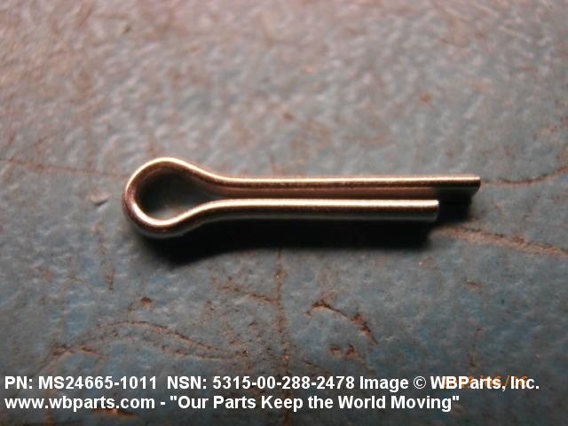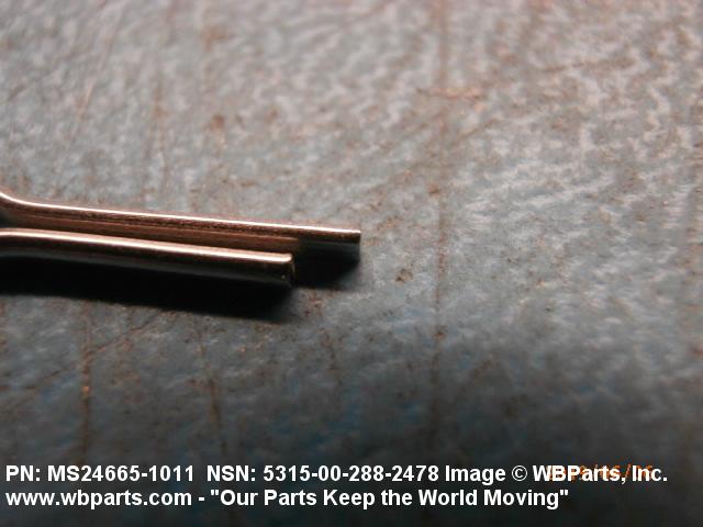 5315-00-288-2478 A half round, cylindrical, or flat piece of metal, bent to form a straight or crimped two-pronged device with an eye at one end, for inserting in a hole drilled at right angle to the axis of the stud, shaft, or like item. Its ends are separable or one end is bent to hold it in place.