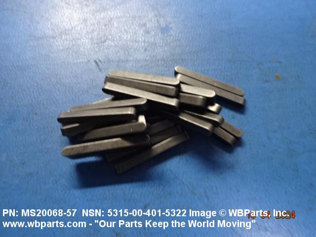 5315-00-401-5322 A metallic item, usually square or rectangular in cross section, usually longer in relation to its width and thickness, with or without a head, usually designed to fit into the pre-cut slots of two adjacent cylindrically shaped members, to prevent relative rotational movement between the two. It may have mounting holes or slots.