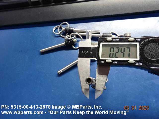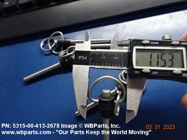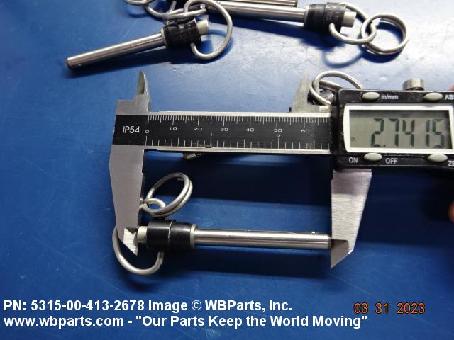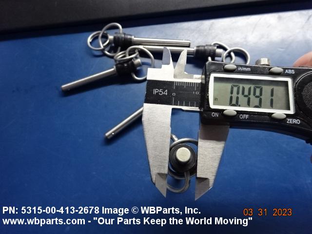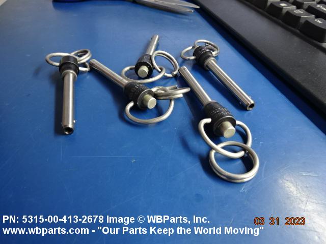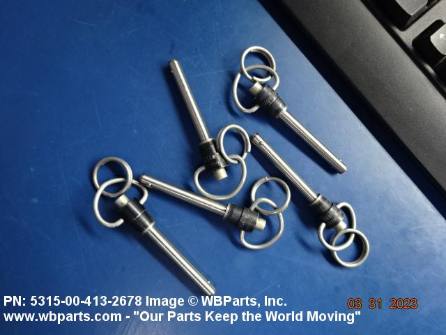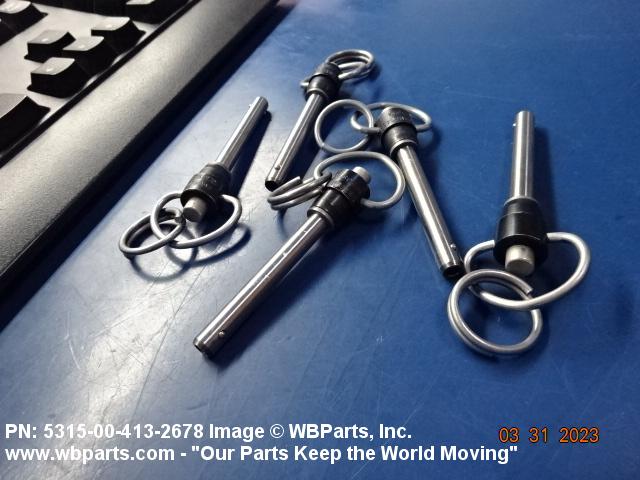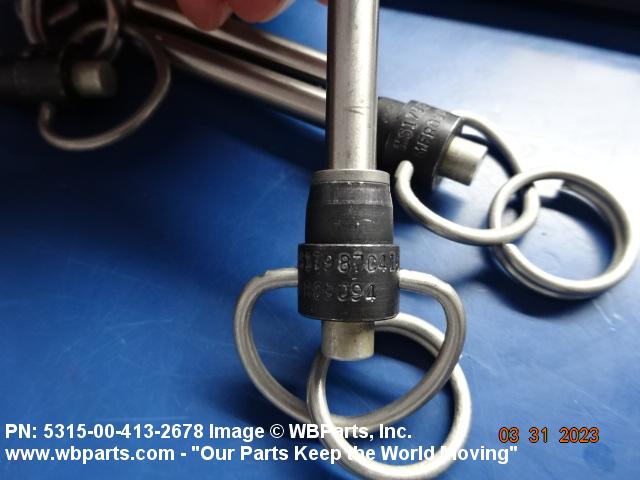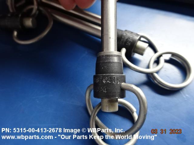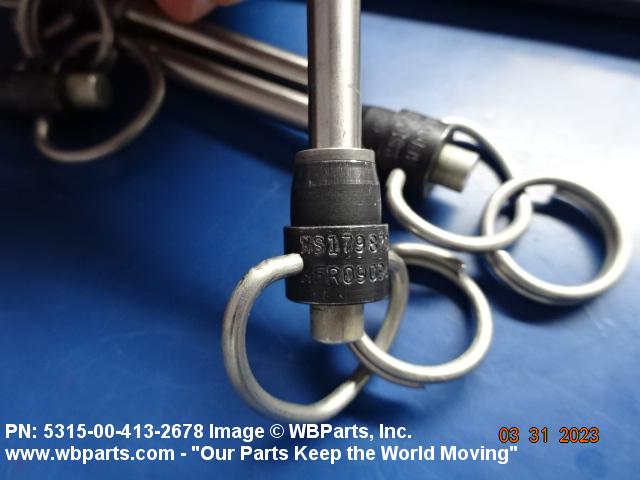5315-00-413-2678 A headed fastening device having a solid cylindrical or tubular body with retaining ball or pinlike detent(s). The detent(s) is/are positioned and actuated by means of a spring, elastomer or plunger. Plunger may be operated by thumb, cam or other means. May be furnished with a pull ring, pull and/or lock ring, attaching ring or hook.