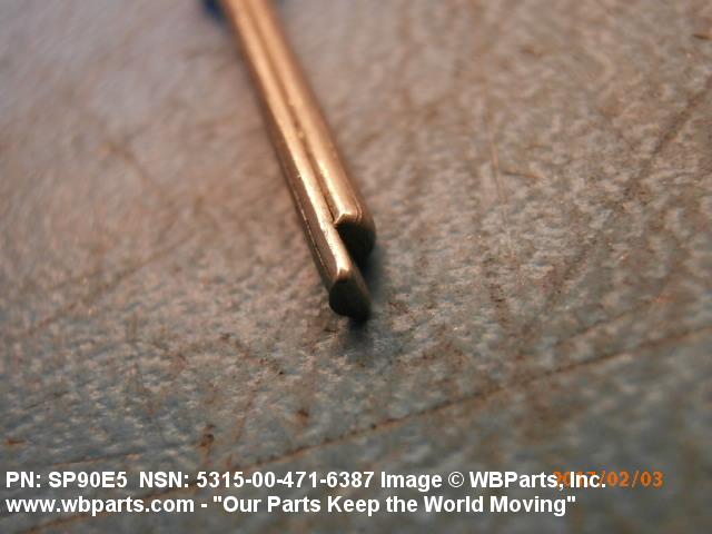 5315-00-471-6387 A half round, cylindrical, or flat piece of metal, bent to form a straight or crimped two-pronged device with an eye at one end, for inserting in a hole drilled at right angle to the axis of the stud, shaft, or like item. Its ends are separable or one end is bent to hold it in place.