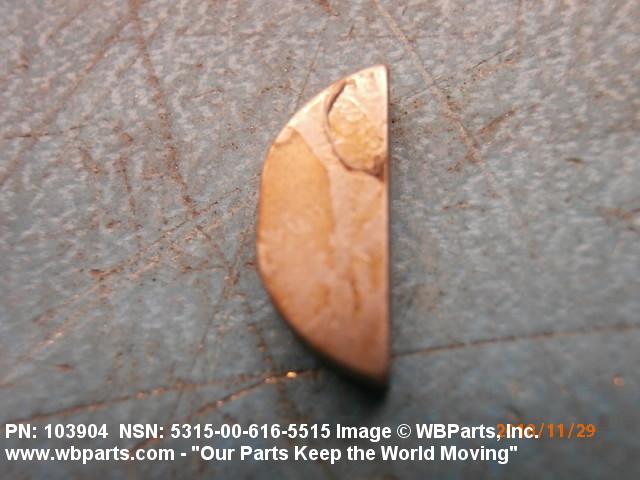 5315-00-597-5607 An item in the form of a segment of a disk, which may have a flat bottom, with or without projecting shoulders, designed to fit into a keyway in an axle or shaft, and into a matching slot in the hub or boss of a wheel, gear or pulley.