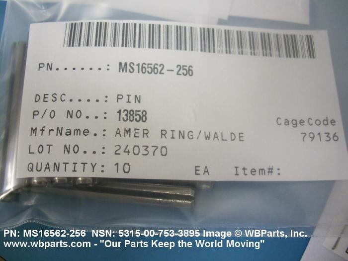 NSN 5315-00-753-3895 MS16562256, MS16562-256, MS171662