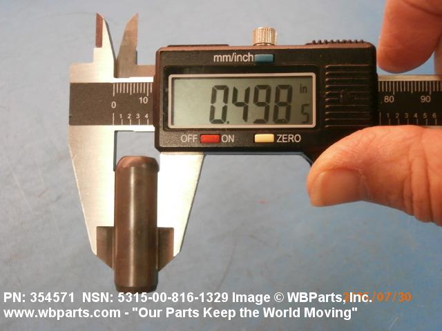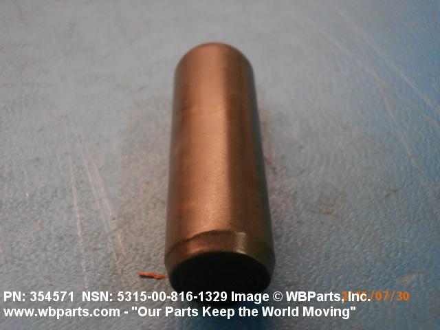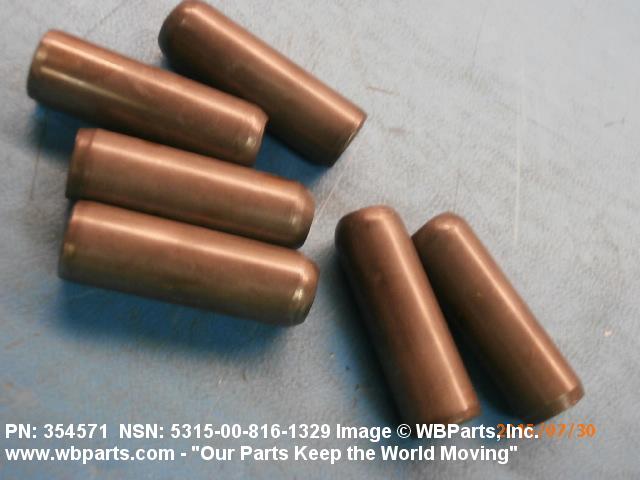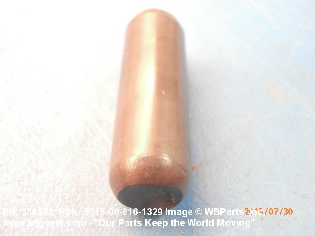 5315-00-816-1329 A headless, cylindrically-shaped item having a straight, smooth, solid body, with or without a drilled hole(s). It has an outside diameter equal to or less than its length. Its length must not exceed twelve inches (304 MM); for items whose length exceeds twelve inches (304 MM); see ROD, STRAIGHT, HEADLESS. It is used for aligning or transfer of torque and/or thrust, by fitting into corresponding holes of another item. See also PIN, STRAIGHT, THREADED.