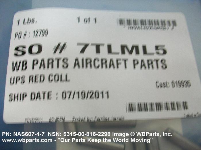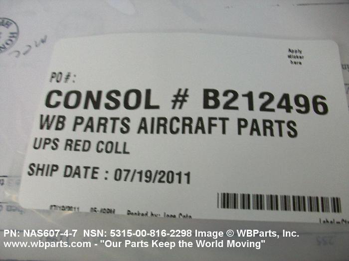 NSN 5315-00-816-2298 NAS60747, NAS607-4-7, 00-816-2298