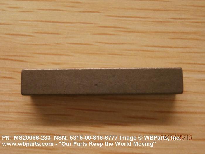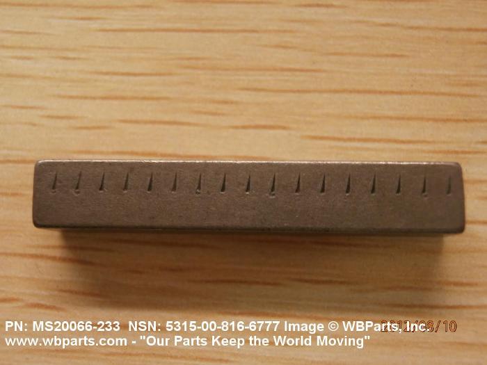 5315-00-816-6777 A metallic item, usually square or rectangular in cross section, usually longer in relation to its width and thickness, with or without a head, usually designed to fit into the pre-cut slots of two adjacent cylindrically shaped members, to prevent relative rotational movement between the two. It may have mounting holes or slots.