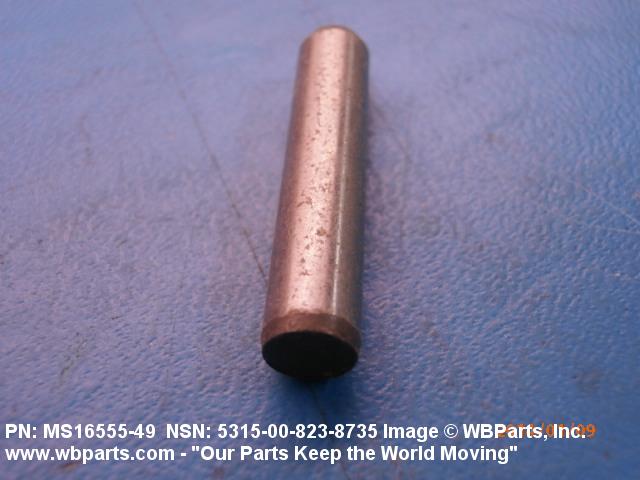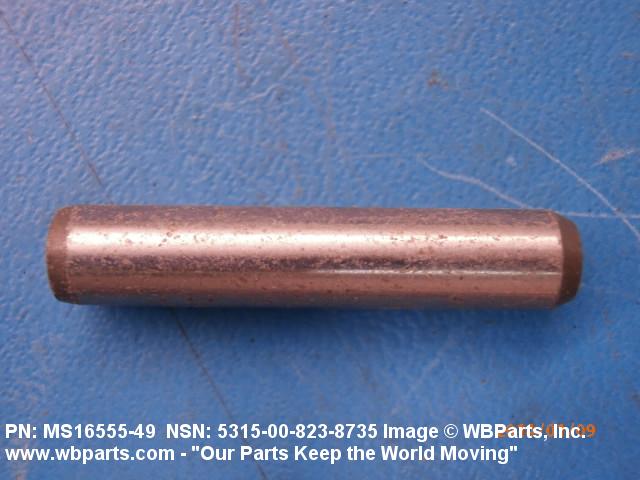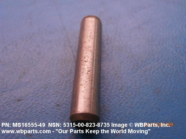 5315-00-823-8735 A headless, cylindrically-shaped item having a straight, smooth, solid body, with or without a drilled hole(s). It has an outside diameter equal to or less than its length. Its length must not exceed twelve inches (304 MM); for items whose length exceeds twelve inches (304 MM); see ROD, STRAIGHT, HEADLESS. It is used for aligning or transfer of torque and/or thrust, by fitting into corresponding holes of another item. See also PIN, STRAIGHT, THREADED.