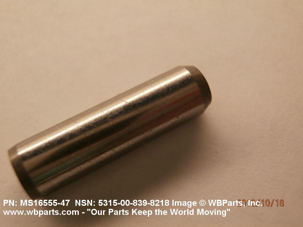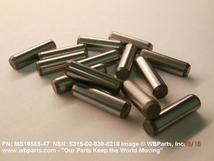 5315-00-839-8218 A headless, cylindrically-shaped item having a straight, smooth, solid body, with or without a drilled hole(s). It has an outside diameter equal to or less than its length. Its length must not exceed twelve inches (304 MM); for items whose length exceeds twelve inches (304 MM); see ROD, STRAIGHT, HEADLESS. It is used for aligning or transfer of torque and/or thrust, by fitting into corresponding holes of another item. See also PIN, STRAIGHT, THREADED.