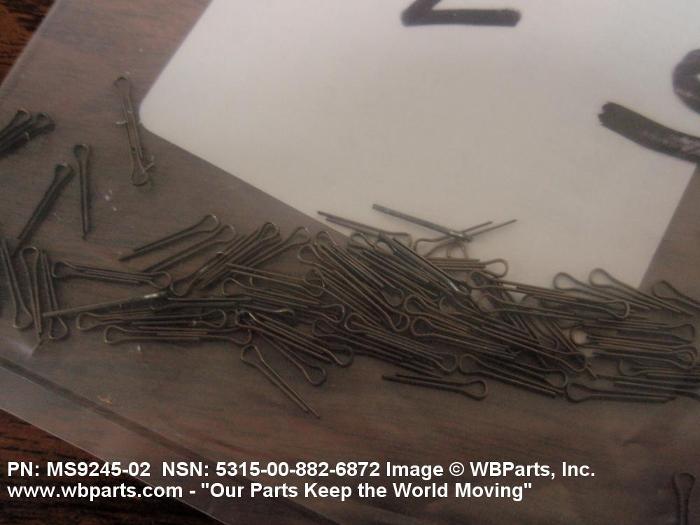5315-00-882-6872 A half round, cylindrical, or flat piece of metal, bent to form a straight or crimped two-pronged device with an eye at one end, for inserting in a hole drilled at right angle to the axis of the stud, shaft, or like item. Its ends are separable or one end is bent to hold it in place.