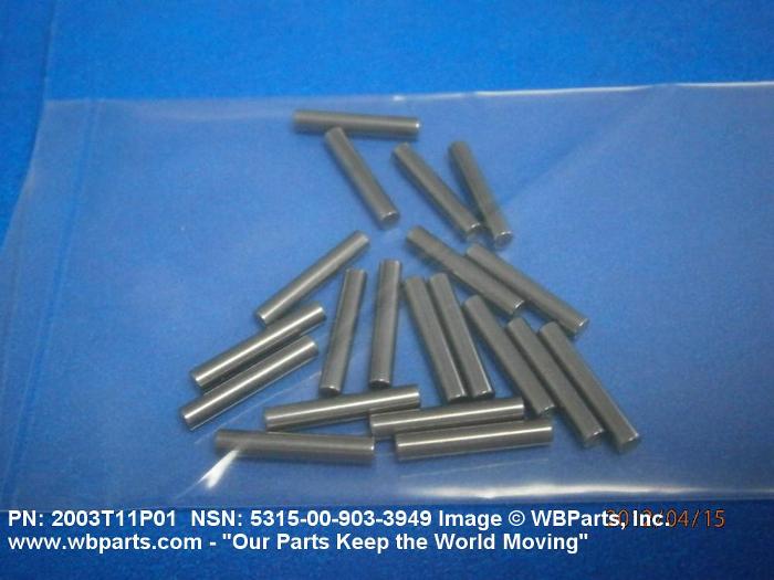 5315-00-903-3949 A headless, cylindrically-shaped item having a straight, smooth, solid body, with or without a drilled hole(s). It has an outside diameter equal to or less than its length. Its length must not exceed twelve inches (304 MM); for items whose length exceeds twelve inches (304 MM); see ROD, STRAIGHT, HEADLESS. It is used for aligning or transfer of torque and/or thrust, by fitting into corresponding holes of another item. See also PIN, STRAIGHT, THREADED.
