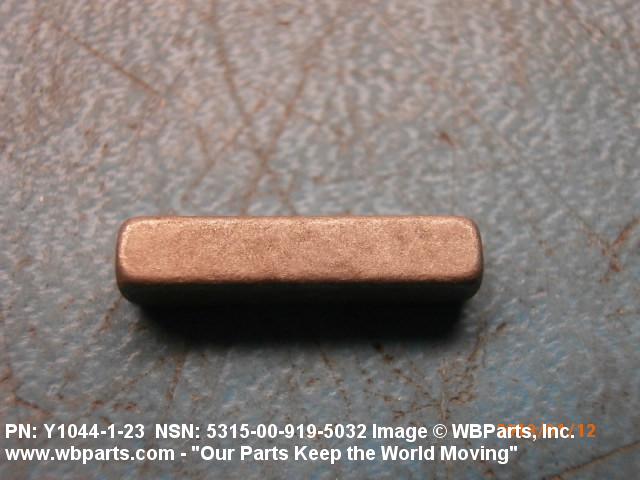 5315-00-919-5032 A metallic item, usually square or rectangular in cross section, usually longer in relation to its width and thickness, with or without a head, usually designed to fit into the pre-cut slots of two adjacent cylindrically shaped members, to prevent relative rotational movement between the two. It may have mounting holes or slots.