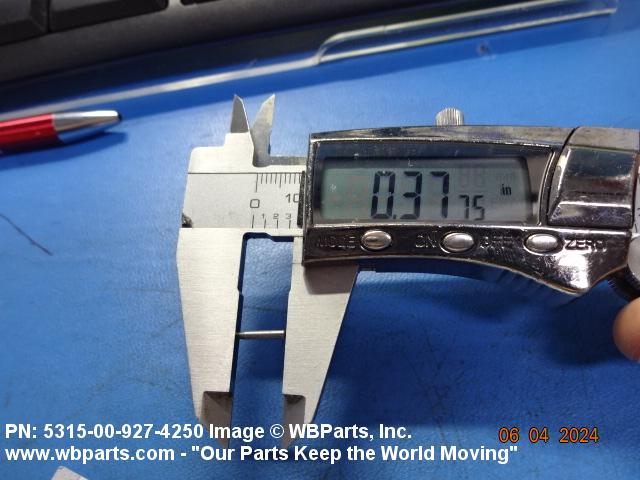 5315-00-927-4250 A headless, cylindrically-shaped item having a straight, smooth, solid body, with or without a drilled hole(s). It has an outside diameter equal to or less than its length. Its length must not exceed twelve inches (304 MM); for items whose length exceeds twelve inches (304 MM); see ROD, STRAIGHT, HEADLESS. It is used for aligning or transfer of torque and/or thrust, by fitting into corresponding holes of another item. See also PIN, STRAIGHT, THREADED.