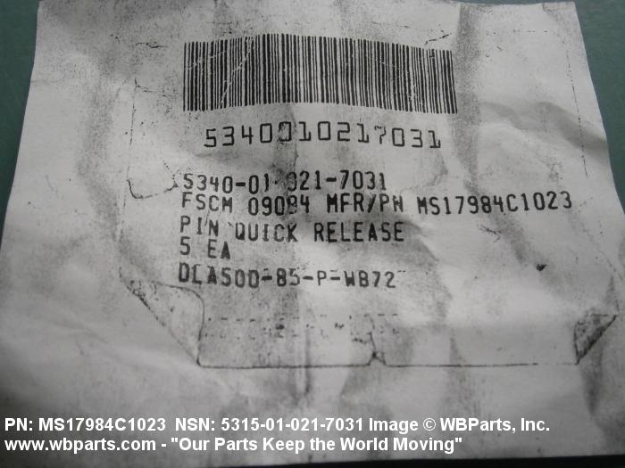 NSN 5315-01-021-7031 MS17984C1023, SLC10AB23, BLC10B23S