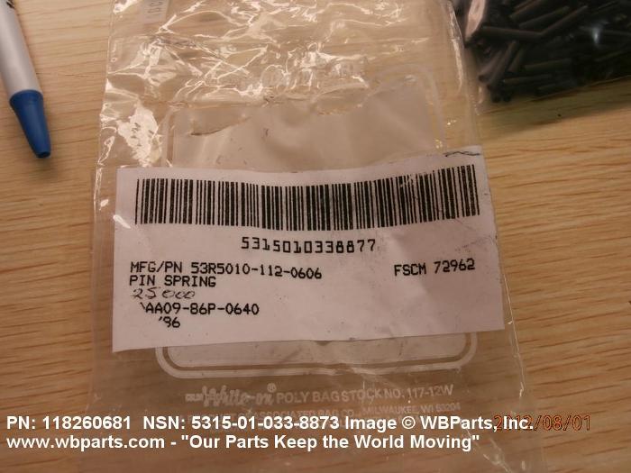 NSN 5315-01-033-8873 11826068-1, 3012002205, 301-200-2205