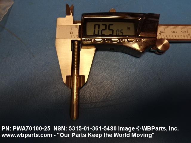 5315-01-114-7679 A headless, cylindrically-shaped item, having external threads at one end only. The threaded and plain portions are of one nominal diameter. Includes items having cotter pin hole(s) on either one or both ends. Its length must not exceed 12 inches (304 MM). It may have a recess drive feature. See also PIN, STRAIGHT, HEADLESS. Excludes STUD, WELDING; and SETSCREW.
