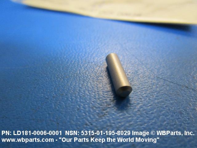 5315-01-195-8029 A headless, cylindrically-shaped item having a straight, smooth, solid body, with or without a drilled hole(s). It has an outside diameter equal to or less than its length. Its length must not exceed twelve inches (304 MM); for items whose length exceeds twelve inches (304 MM); see ROD, STRAIGHT, HEADLESS. It is used for aligning or transfer of torque and/or thrust, by fitting into corresponding holes of another item. See also PIN, STRAIGHT, THREADED.