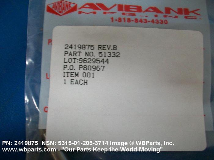 NSN 5315-01-205-3714 2419875, 51332, 01-205-3714
