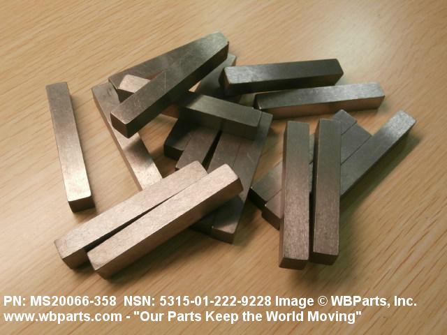 5315-01-222-9228 A metallic item, usually square or rectangular in cross section, usually longer in relation to its width and thickness, with or without a head, usually designed to fit into the pre-cut slots of two adjacent cylindrically shaped members, to prevent relative rotational movement between the two. It may have mounting holes or slots.