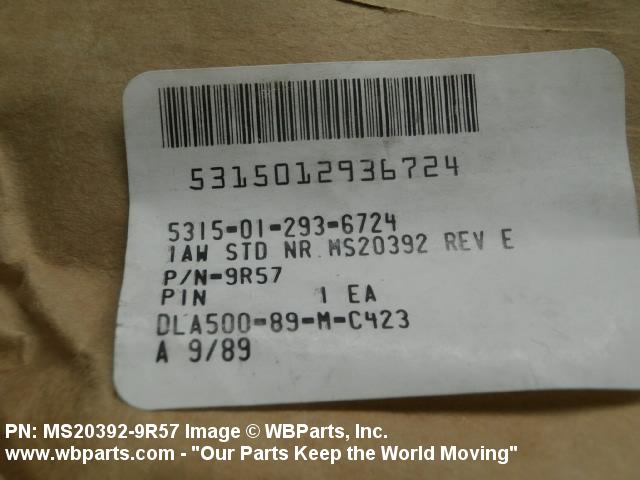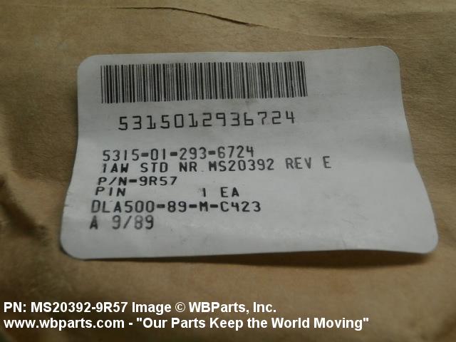 Part Alternates: MS203929R57, MS20392-9R57, 5315-01-293-6724, 01-293-6724, 5315012936724, 012936724