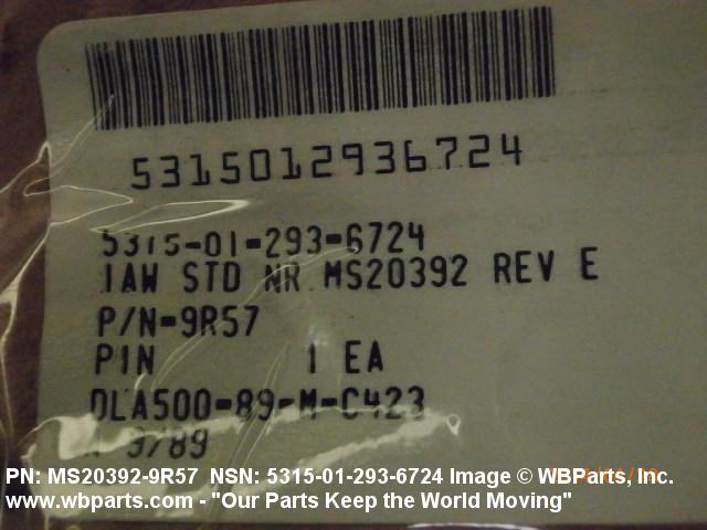NSN 5315-01-293-6724 MS203929R57, MS20392-9R57, 01-293-6724