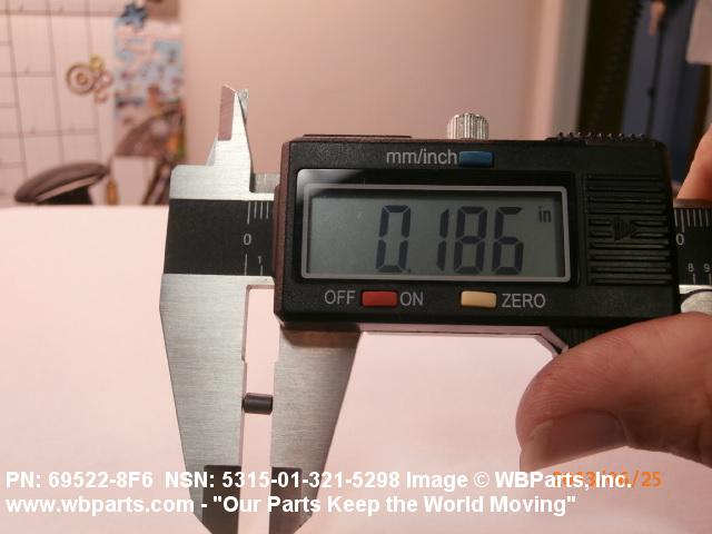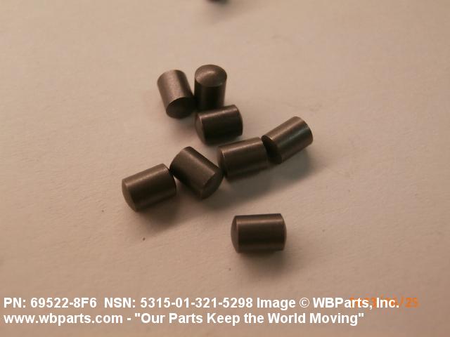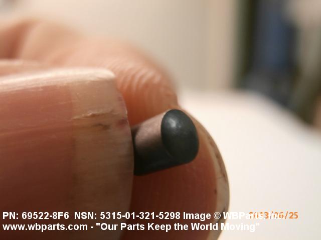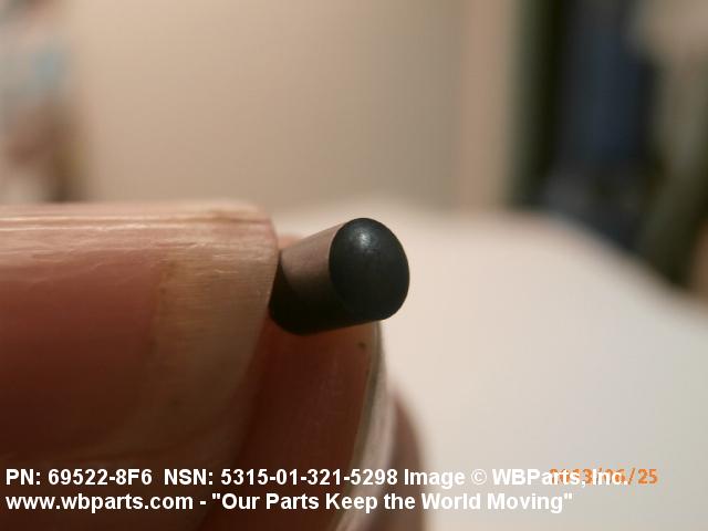 5315-01-321-5298 A headless, cylindrically-shaped item having a straight, smooth, solid body, with or without a drilled hole(s). It has an outside diameter equal to or less than its length. Its length must not exceed twelve inches (304 MM); for items whose length exceeds twelve inches (304 MM); see ROD, STRAIGHT, HEADLESS. It is used for aligning or transfer of torque and/or thrust, by fitting into corresponding holes of another item. See also PIN, STRAIGHT, THREADED.